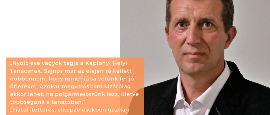 „Nyolc éve vagyok tagja a Kaplonyi Helyi Tanácsnak. Sajnos már az elején rá kellett döbbennem, hogy mindhiába vetünk fel jó ötleteket. Azokat megvalósítani kizárólag akkor lehet, ha polgármesterünk lesz, illetve többségünk a tanácsban.”