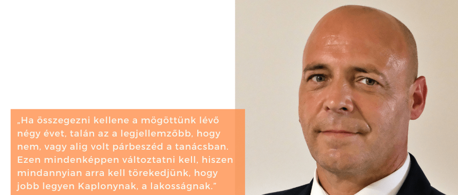 „Ha összegezni kellene a mögöttünk lévő négy évet, talán az a legjellemzőbb, hogy nem, vagy alig volt párbeszéd a tanácsban. Ezen mindenképpen változtatni kell, hiszen mindannyian arra kell törekedjünk, hogy jobb legyen Kaplonynak, a lakosságnak.”