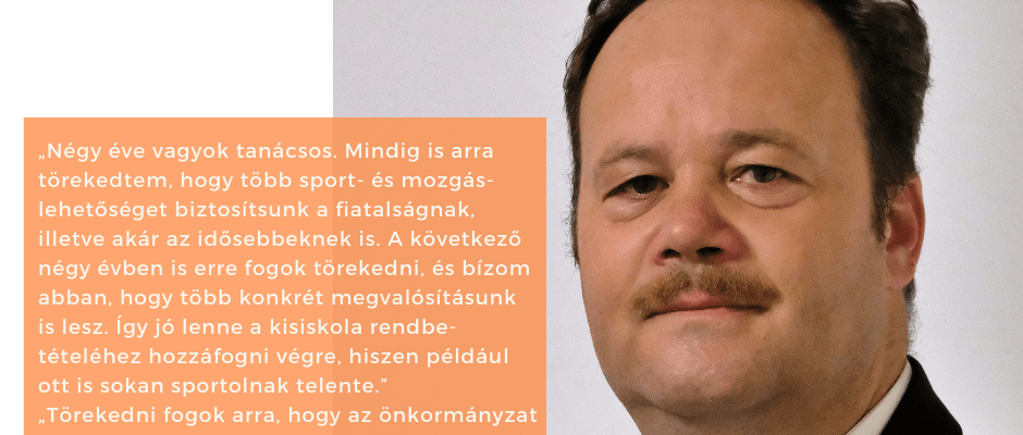 „Négy éve vagyok tanácsos. Mindig is arra törekedtem, hogy több sport- és mozgáslehetőséget biztosítsunk a fiatalságnak, illetve akár az idősebbeknek is. A következő négy évben is erre fogok törekedni, és bízom abban, hogy több konkrét megvalósításunk is lesz. Így jó lenne a kisiskola rendbetételéhez hozzáfogni végre, hiszen például ott is sokan sportolnak telente.”