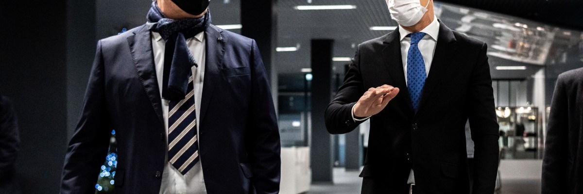 A magyarországi Külgazdasági és Külügyminisztérium (KKM) által közreadott képen Szijjártó Péter külgazdasági és külügyminiszter (j) és Christian Wolff gyárigazgató a Mercedes kecskeméti gyárában 2020. december 14-én.