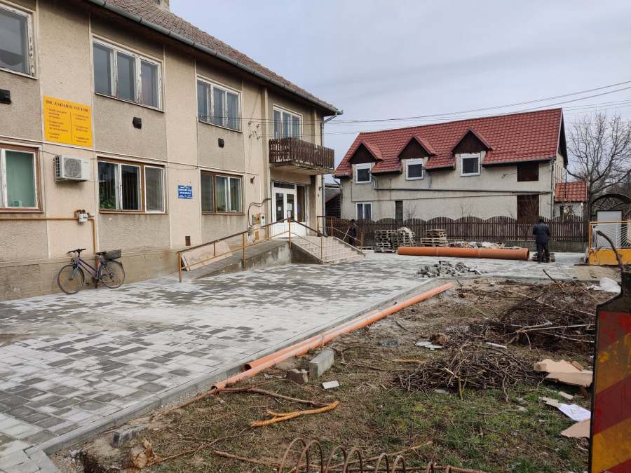 A munkálat kivitelezésének jogát a nagykárolyi székhelyű Andy Kft. nyerte el. A cég vezetője, Schlachter Levente kifejtette: „a hideg dacára jó ütemben haladunk a munkálatokkal. A rendelő előtti térkövezést jórészt el is végeztük, már hozzákezdünk a behajtó újraépítéséhez is, illetve a jövő hét elején szemközt, a régi iskola előtti parkoló kialakításának is nekifogunk”.