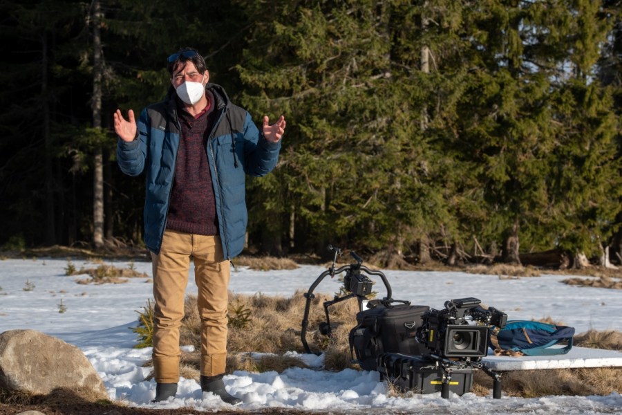Fülöp Zoltán színművész a Nyirő József Uz Bence című regényének részletéből készülő, Szemfedő című kisjátékfilm forgatásán a székelyföldi Hargitafürdőn 2021. február 26-án.