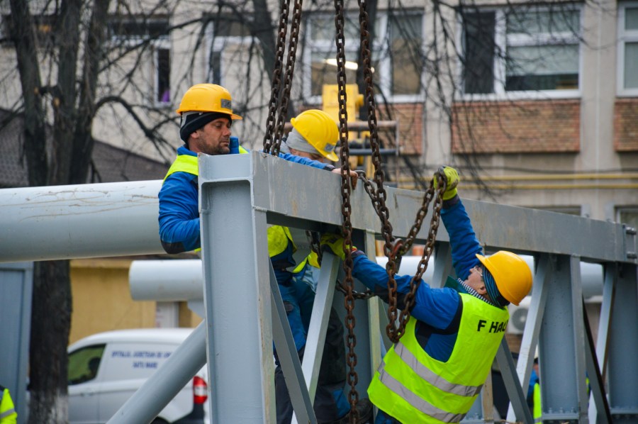 A híd 6 tonnás szerkezetét a mai napon állítják fel a szakemberek a két épület között.