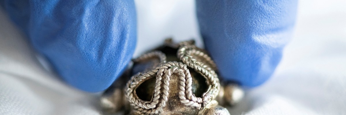 Takácsné Varga Ágnes restaurátor becsomagolja egy harcos férfi megtisztított honfoglalás kori ezüst gyűrűjét a Jósa András Múzeumban 2021. március 18-án.
