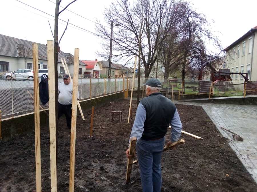 Fákat ültettek ma Kaplonyban. A rendelők előtti térre hársakat, illetve tiszafákat.