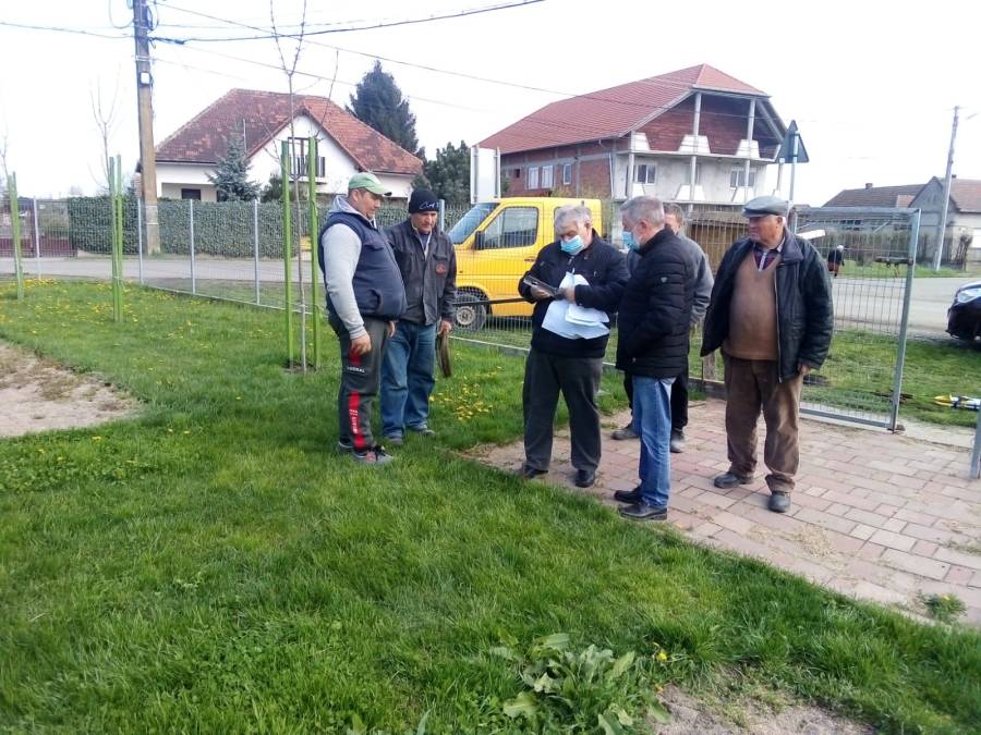 Időközben megérkeztek az első játszótéri elemek is, jelesül a kerékpártárolók, a szemeteskukák, padok, valamint az ivókút és a hirdetőtábla. Ezeket egy ideig a községházán tárolják.