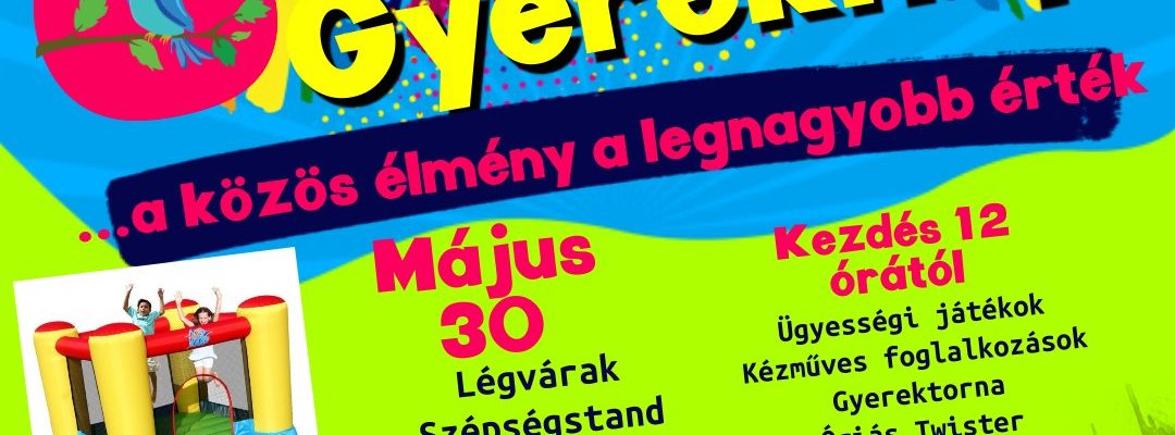 A községháza udvarán szórakoztató, ügyességi játékokban vehetnek részt a gyerekek, ugrálhatnak a légvárakban, különféle lufiállatokat hajtogat nekik egy bohóc, a lányok különleges hajfonatokat kérhetnek, lehetőség lesz arcfestésre, csillámtetoválásra, mindeközben pedig muffint, fánkot, palacsintát és limonádét fogyaszthatnak. A kultúrház elől lovashintó indul majd több járatban, amivel a környéken utazhatnak a gyerekek. A kultúrházban különböző kézműves foglalkozásokhoz csatlakozhatnak a gyerekek, két alkalommal gyerek-aerobicon vehetnek részt, a nagyobbak kipróbálhatnak egy új sportot, a floorballt, majd a napot egy tábortűz köré ülős, gitárkíséretes közös énekléssel zárjuk.