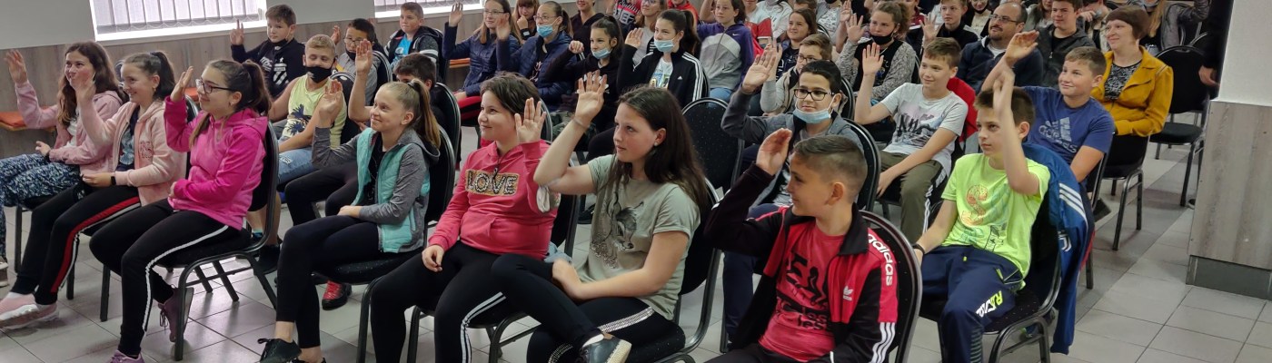 A humor játék. Marosán Csaba kolozsvári színművész tartott ma előadást a kaplonyi iskolásoknak a kultúrotthonban.