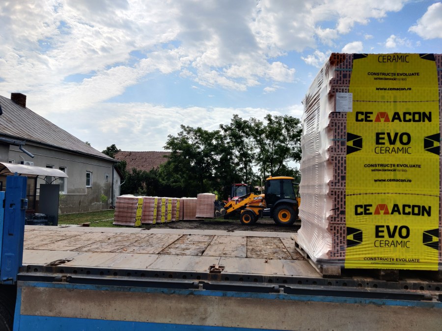 Utóbb az is kiderült, hogy fémszerkezetes megoldással tudjuk elkészíttetni az épületet. Az előkészületi munkálatok meg is kezdődtek, ma hozták ki a téglákat.
