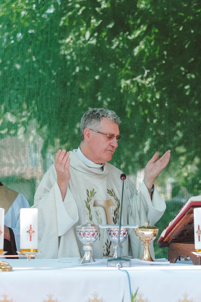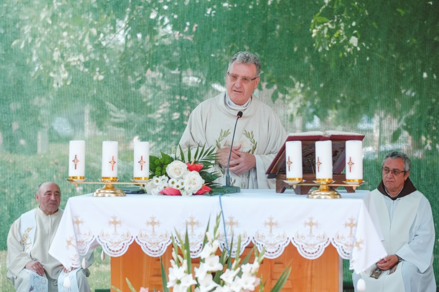 Az atya ünnepli beszédében beszélt Assisi Szent-Ferencről, az Angyalos-Boldogasszony – így a porciunkula – ünnepéről, az angyalokról és arról, miként vannak azok jelen mai az ember életében. A kifejezetten tanulságos prédikációt követően a szentmise rendje és módja szerint megtörtént a szentáldozás, majd Tímár Asztrik házfőnök mondott köszönetet Tempfli atya nagyszerű szónoklatáért, majd Isten áldását kérte az atya életére és további szolgálatára.