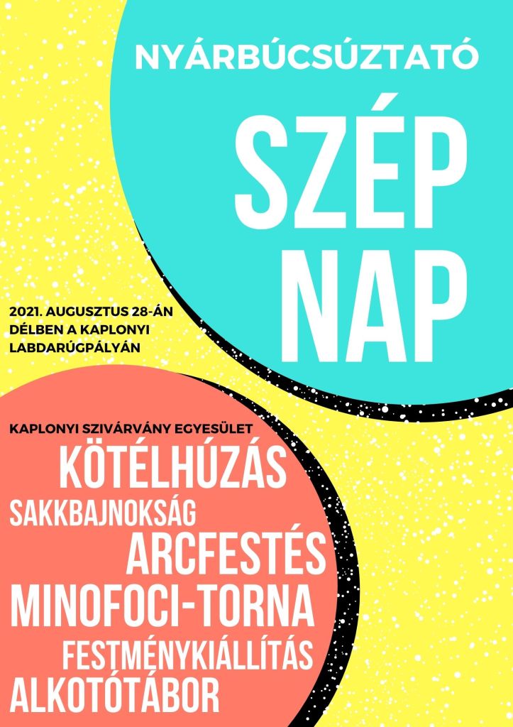 Magát a rendezvény a kaplonyi önkormányzat több civil- és egyházi szervezet, baráti társaság segítségével szervezi meg. Tulajdonképpen egy úgynevezett sztárfellépő nélküli falunapi kavalkádra kell gondolni – részletezik a szervezők. A nyarat búcsúztató rendezvényhez társul egyebek között a Kaplonyi Szivárvány Egyesület is. A közös alkalom – családi nap – helyszíne a labdarúgópálya melléke lesz. Időpontja pedig augusztus 28-a.