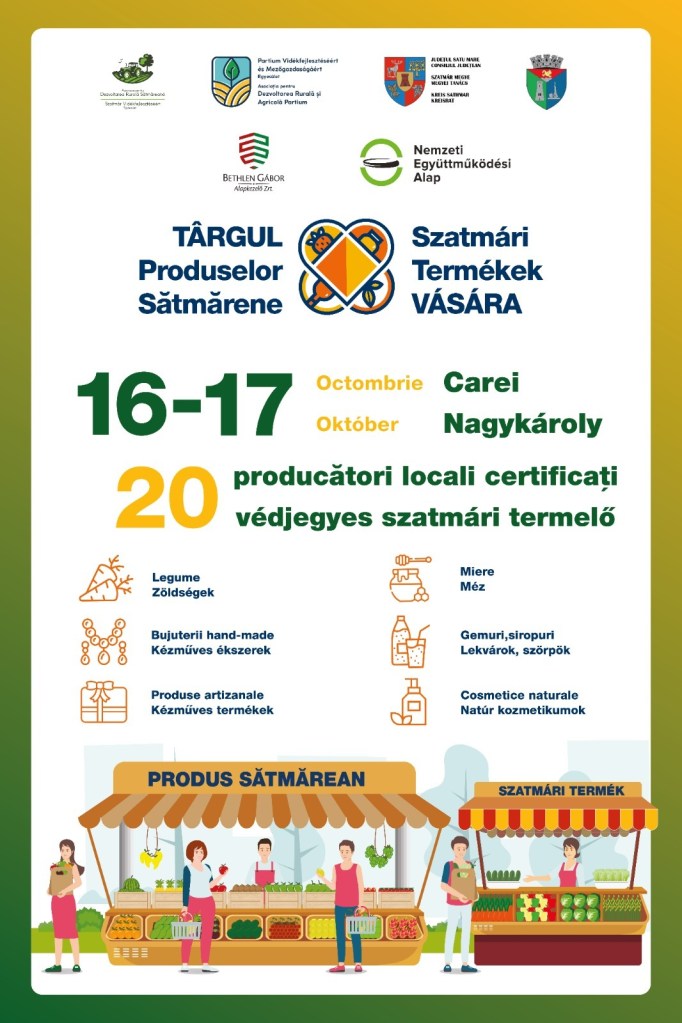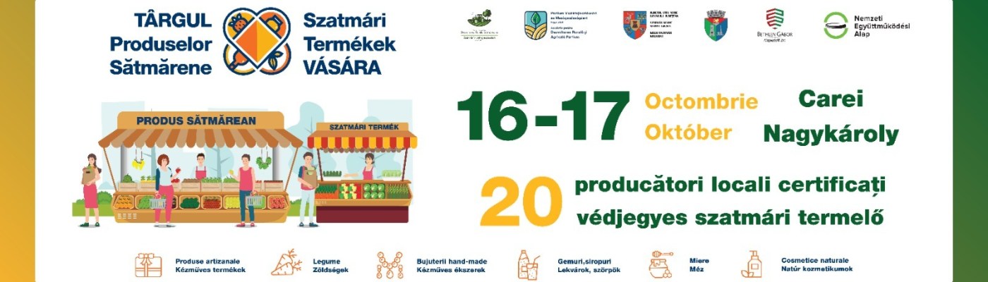 Október 16-17-én Nagykárolyban, a kastélykertben nyitja meg kapuit húsz termelő részvételével a Szatmári Termék Vásár, amelynek két napja alatt a nagykárolyiak a helyi gazdálkodók termése mellett a megye kézműveseinek szezonhoz illő alkotásaiból is válogathatnak.