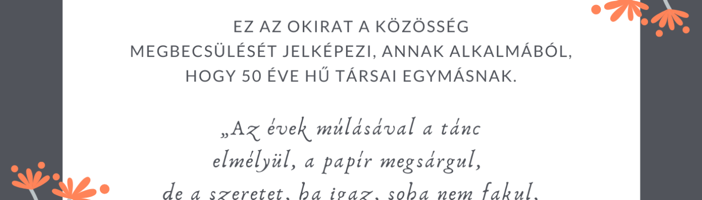 Egy házaspárnak az 50. házassági évfordulója alkalmából gratulált pénteken Megyeri Tamás Róbert polgármester és Csizmár Antal Tamás alpolgármester.