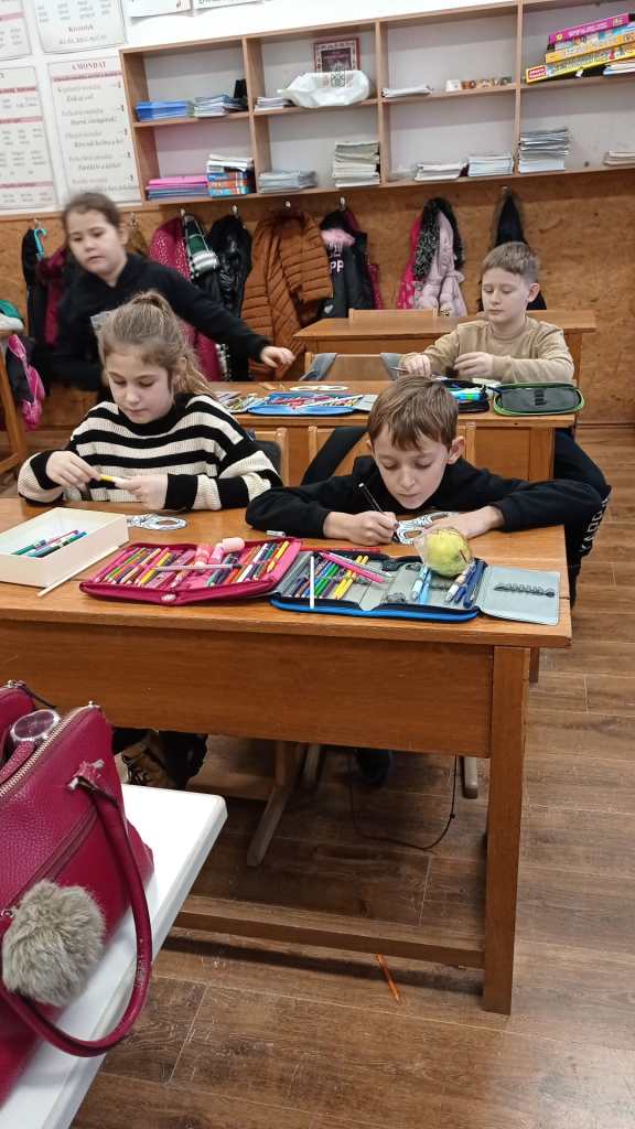 Az óra kézműves foglalkozással zárult, visszatéve eredeti témájukhoz, színes álarcokat alkottak, festettek, díszítettek, kiegészítőnek az eljövendő álarcosbálra.