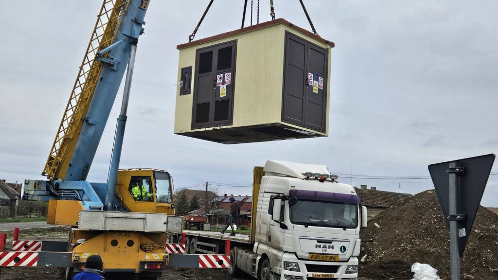 Ma kihelyezte a kivitelező cég az új transzformátorállomást! A mindennapok nyelvén ez azt jelenti, hogy napokon, heteken belül érezhető lesz a felhasználók szintjén is, hogy stabil az áramszolgáltatás.