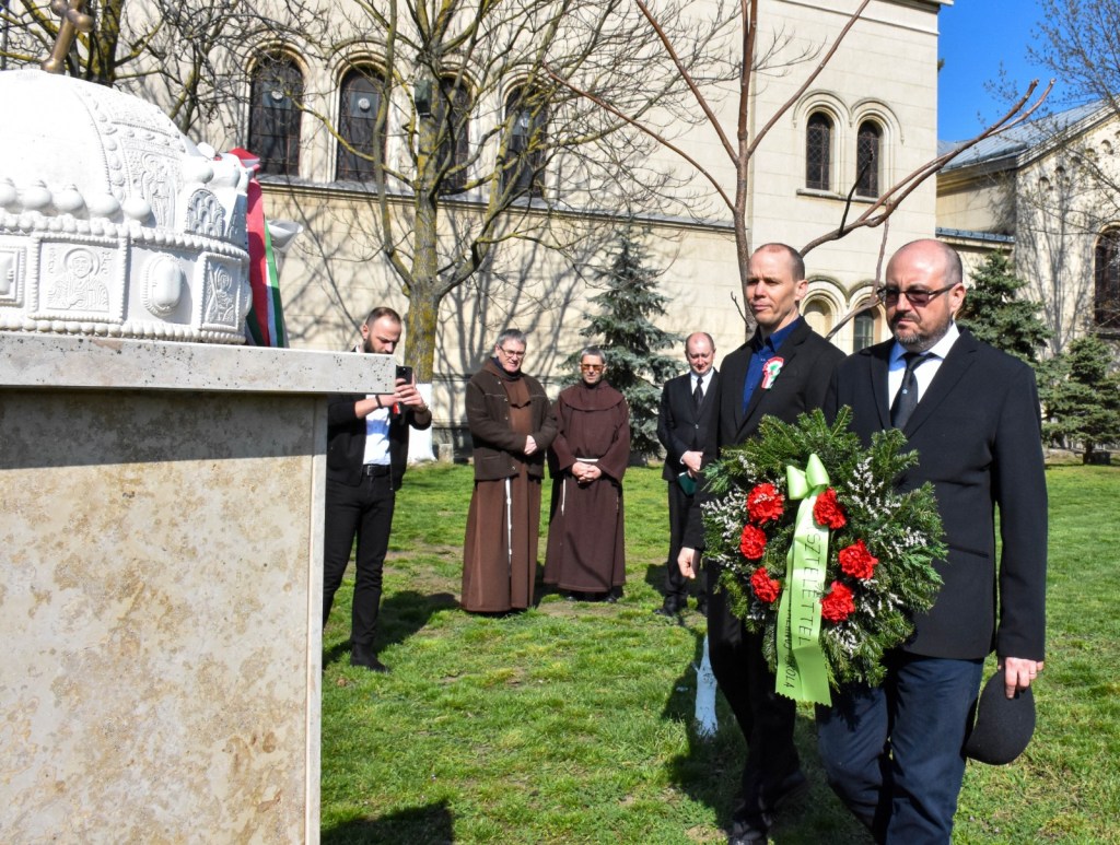 Török Tamás iskolaigazgató a 48–49-es forradalom és szabadságharcról szólt a jelenlévőknek, Kallós Zoltán államtitkár méltatta a kaplonyi ifjakat az előadásukért. A Szent Antal római katolikus templom kertjében lévő Szentkorona szobor előtt folytatódott a meghitt alkalom, mégpedig mint az utóbbi években, főhajtással. Előbb Erdős Csaba tiszteletes és Leander testvér mondott imát, majd Túrós Lóránd szenátor és Kallós Zoltán államtitkár helyezett el koszorút, így tett Török Tamás igazgató és Lászlóffy Csaba Zsolt tanár (ő készítette fel a diákjait az előadásra), illetőleg a helyi RMDSZ közössége nevében Megyeri Tamás Róbert polgármester és Csizmár Antal Tamás alpolgármester.