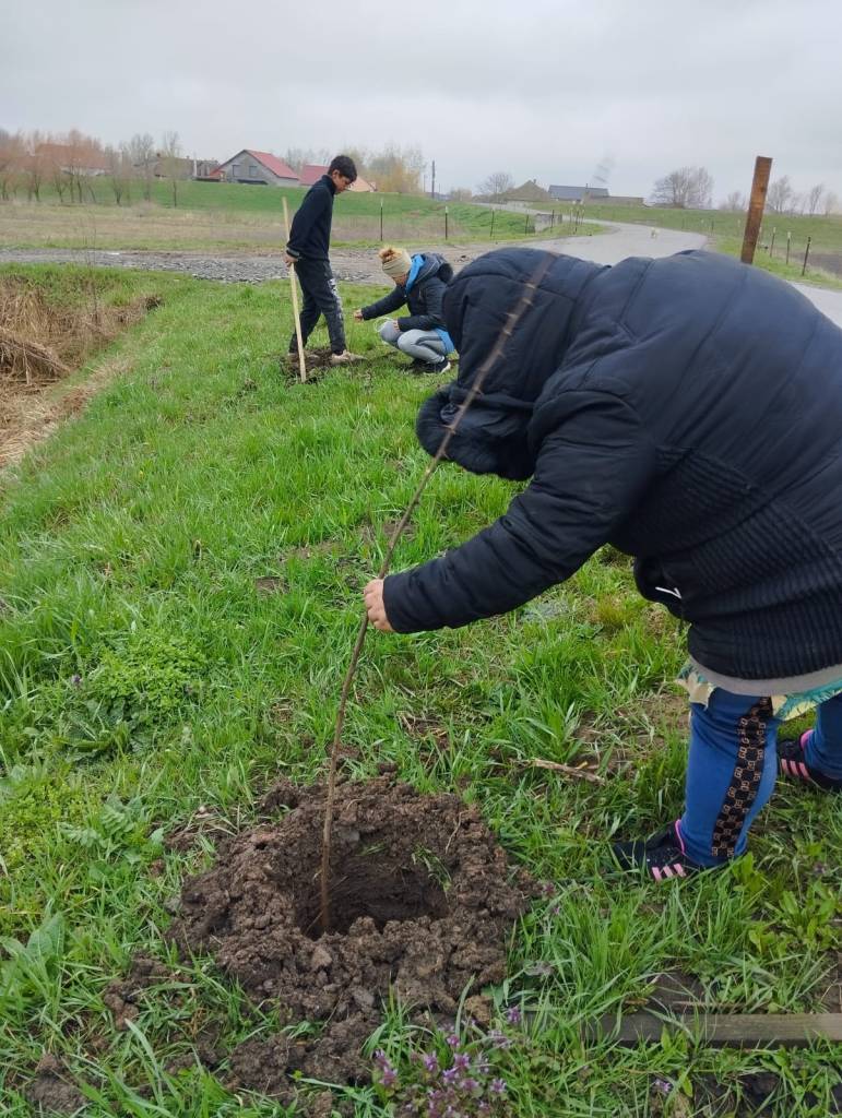 Fákat ültettek ma Kaplonyban. Egy helyi vállalkozó, Heveli József ajánlott fel 100 darab akáccsemetét a községnek.