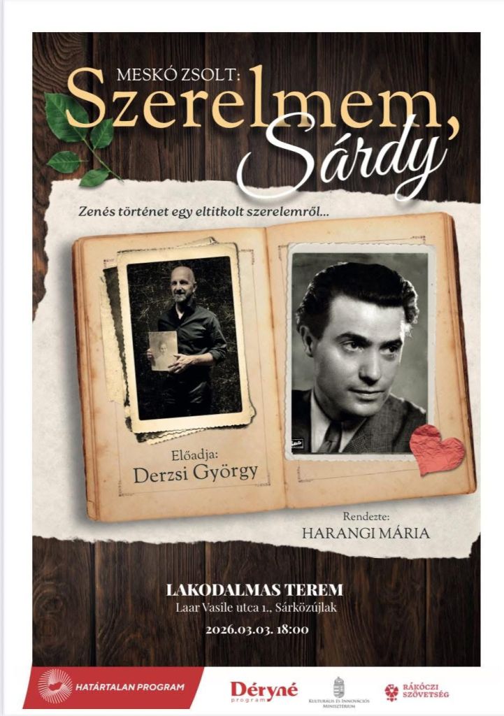Ma este, azaz 2026. március 12-én, csütörtökön 19 órára várják az érdeklődőket a kaplonyi kultúrotthonba, ahol bemutatjuk a SZERELMEM, SÁRDY című zenés darabot.
