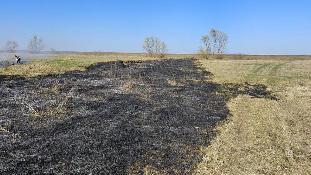 12:49-kor érkezett a jelzés, hogy a Mirna farm közelében, a Kraszna folyó és a Domahida felé tartó védelmi part közötti területen lángra kapott a kiszáradt növényzet. A tűz mintegy egyhektárnyi területet érintett.