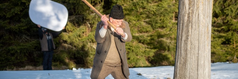 Fülöp Zoltán színművész a Nyirő József Uz Bence című regényének részletéből készülő, Szemfedő című kisjátékfilm forgatásán a székelyföldi Hargitafürdőn 2021. február 26-án.