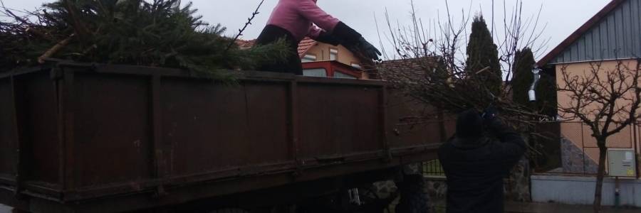 A rossz időjárás ellenére megkezdték a kihelyezett nyesedékek elhordását. A munkálatokat természetesen folytatni fogják.