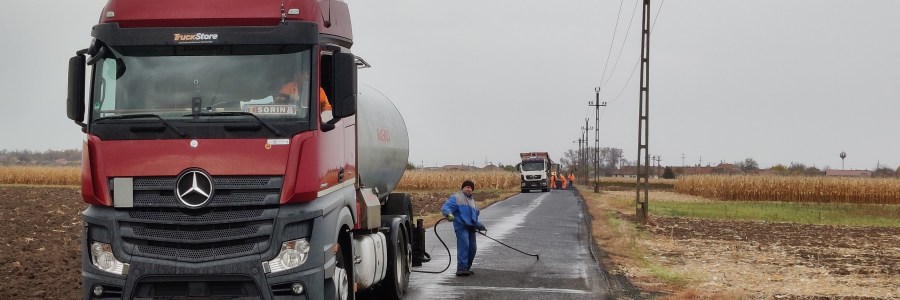 Kaviccsal és szurokkal szórják be a megyei utat Kaplony és Kálmánd között. A munkálatot a Diferit Kft. végzi a megyei önkormányzattal kötött útkarbantartási megállapodásnak megfelelően.